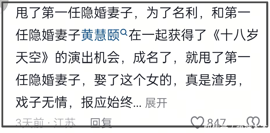 而隐婚的话题,则是因为黄慧颐说了一句“我都不说前什么了,就前任吧”,让网友认为是指两人有过一段婚姻,原本的“前”可能是前妻并非前任,也只有婚姻才会让人义无反顾的放弃所有。